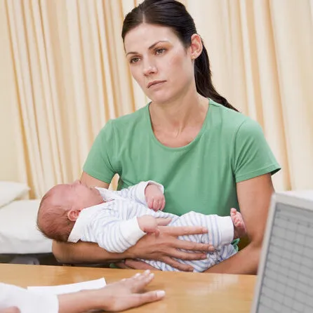 In rare cases, mothers may hallucinate or feel disoriented, may experience paranoia, or may actually try to harm themselves or their babies. In this case, the mother is experiencing postpartum psychosis and requires immediate medical treatment for the safety of herself and her baby.